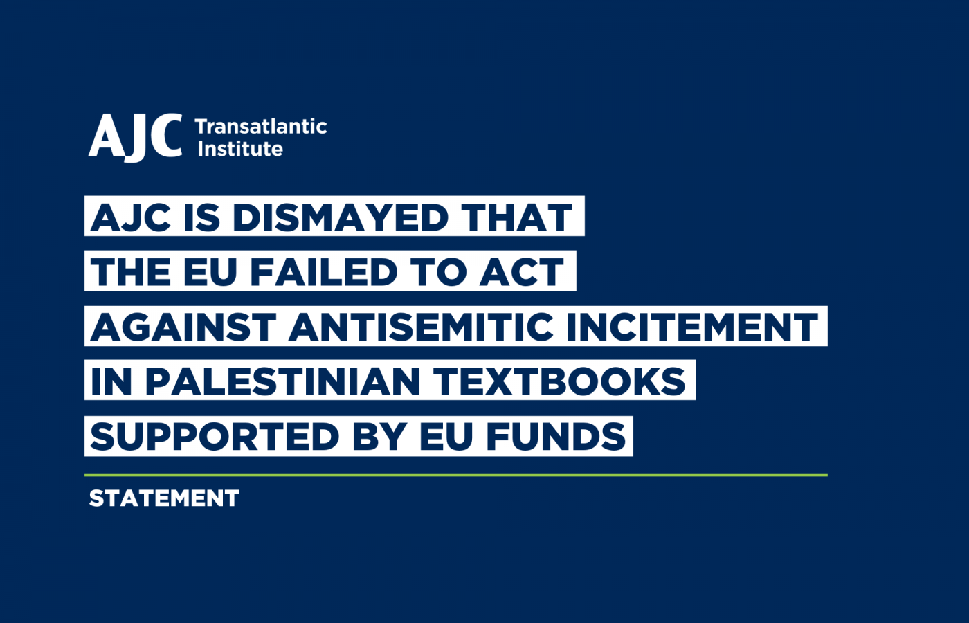The AJC Transatlantic Institute (TAI) is the Brussels-based EU Office of the American Jewish Committee (AJC), a non-partisan organization founded in 1906. AJC's mission is to enhance the well-being of the Jewish people and Israel, and to advance human rights and democratic values in the United States and around the world. Read on...