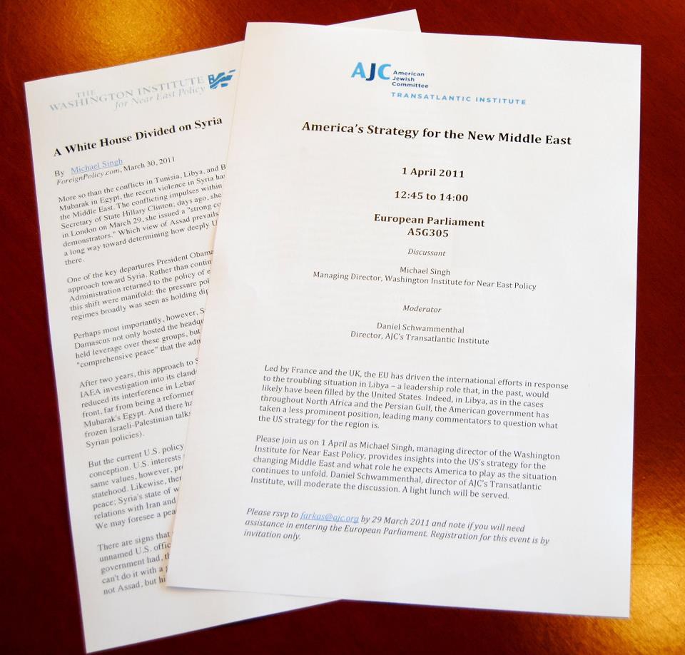 "America's Strategy for the New Middle East" - Michael Singh briefs MEP's and official