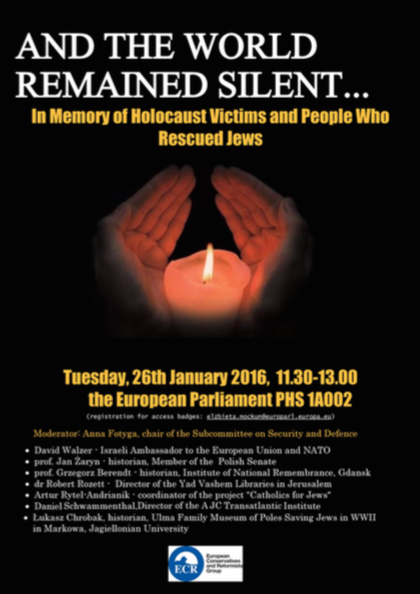 On 26 January 2015, on the eve of the International Holocaust Remembrance Day, TAI Director Daniel Schwammenthal spoke at MEP Anna Fotyga's conference "And the World Remained Silent...In Memory of Holocaust Victims and People Who Rescued Jews"