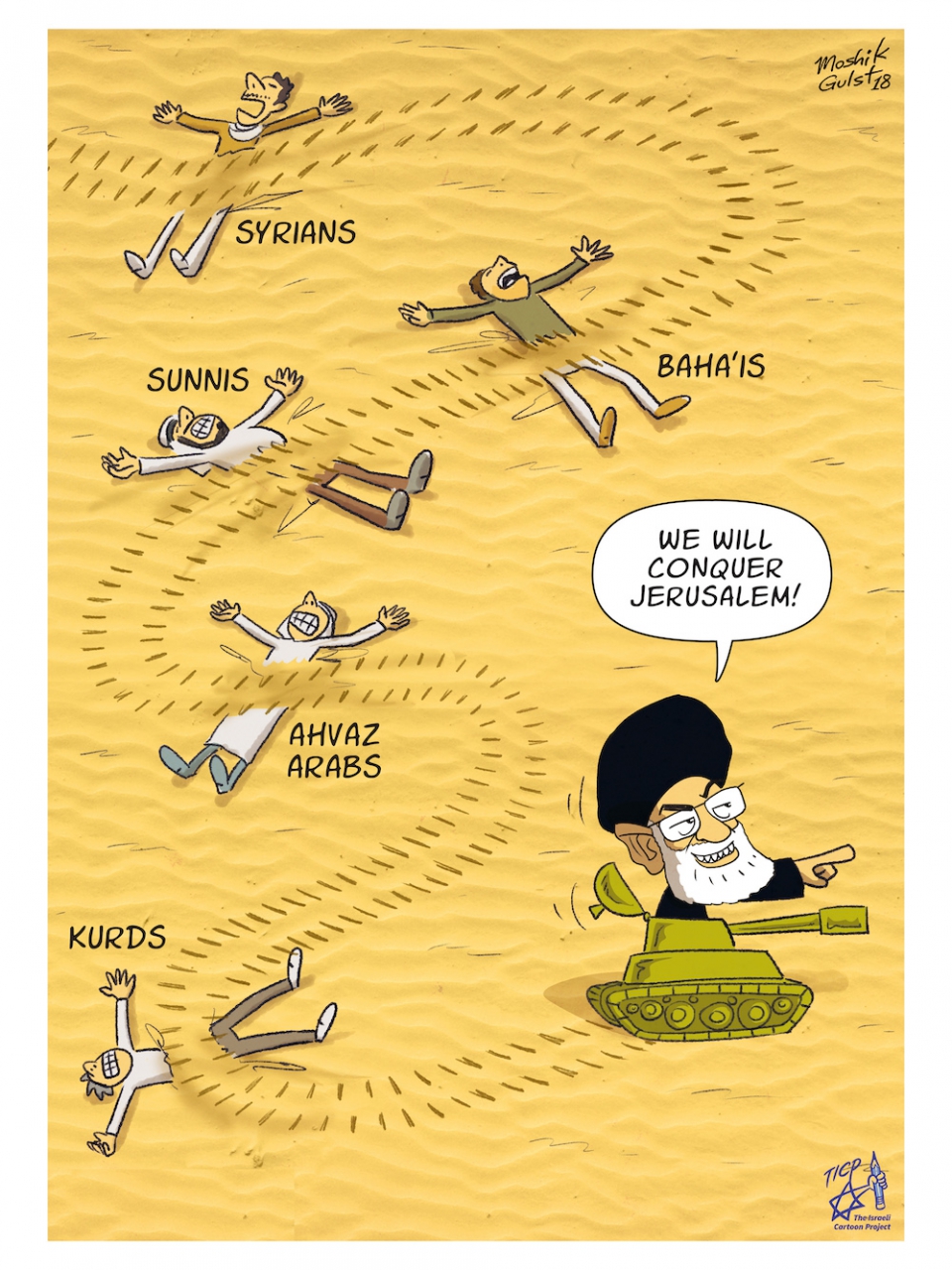 The exhibition featured artwork by members of the The Israeli Cartoon Project, who consider their work as an act of solidarity with the Iranian people.