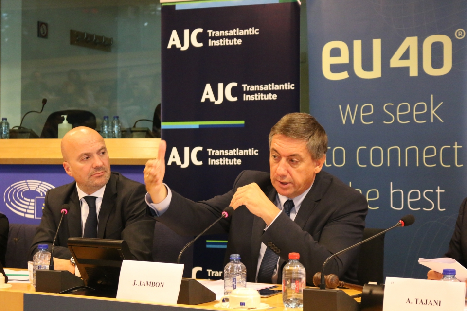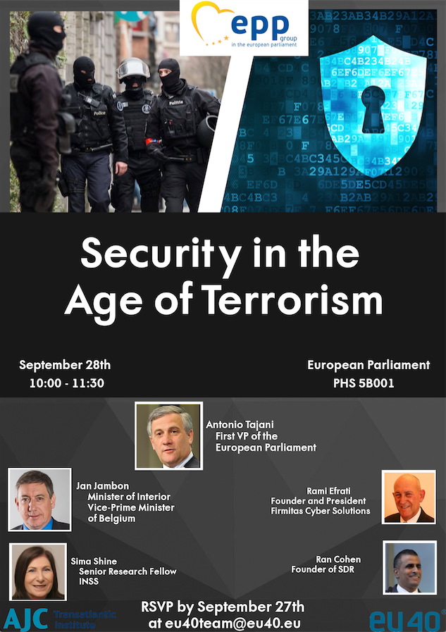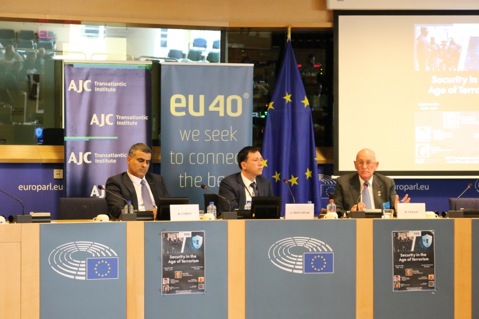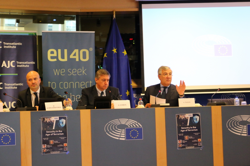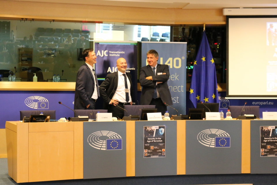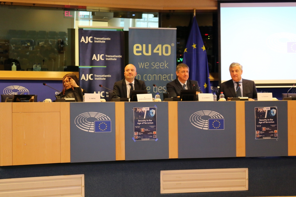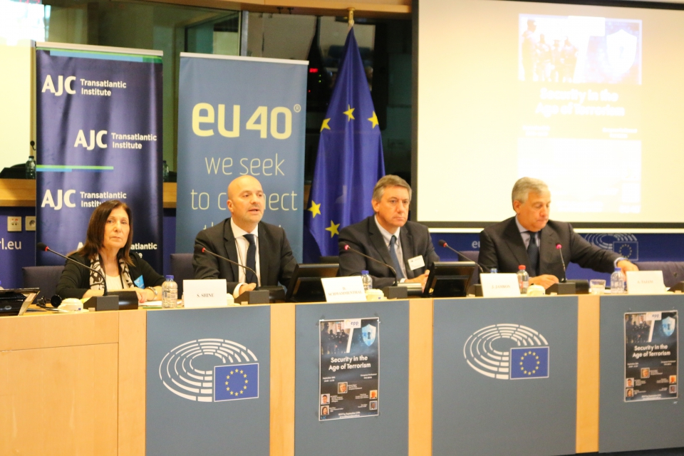 The AJC Transatlantic Institute in cooperation with EU40 held this week a highly attended conference entitled "Security in the Age of Terrorism" in the European Parliament. High-ranking speakers included the Belgian Interior Minister Jan Jambon and former head of research at the Intelligence Division of the Mossad Sima Shine. First Vice President of the European Parliament, Antonio Tajani, graciously hosted this important event in the European Parliament.