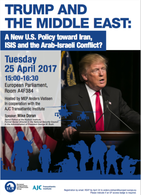The AJC Transatlantic Institute co-organized with MEP Anders Vistisen, 1st Vice Chair of the European Parliament's Committee on Foreign Affairs, an exchange of views in the European Parliament with Mike Doran, Senior Fellow at the Hudson Institute and former Senior Director in the National Security Council in the Administration of President George W. Bush.