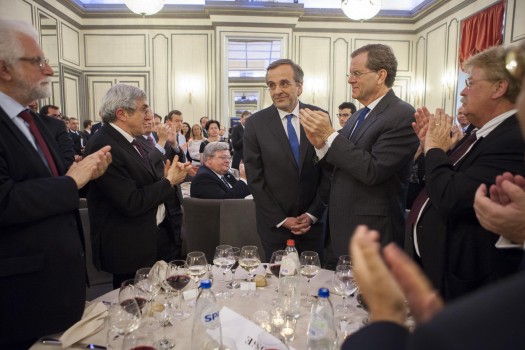 June 26, 2014 – Brussels – Greek Prime Minister Antonis Samaras addressed an AJC Transatlantic Institute dinner last night. While acknowledging the immense challenges facing his country since 2008, including nearly 60 percent youth unemployment, he presented a generally optimistic outlook for Greece.
