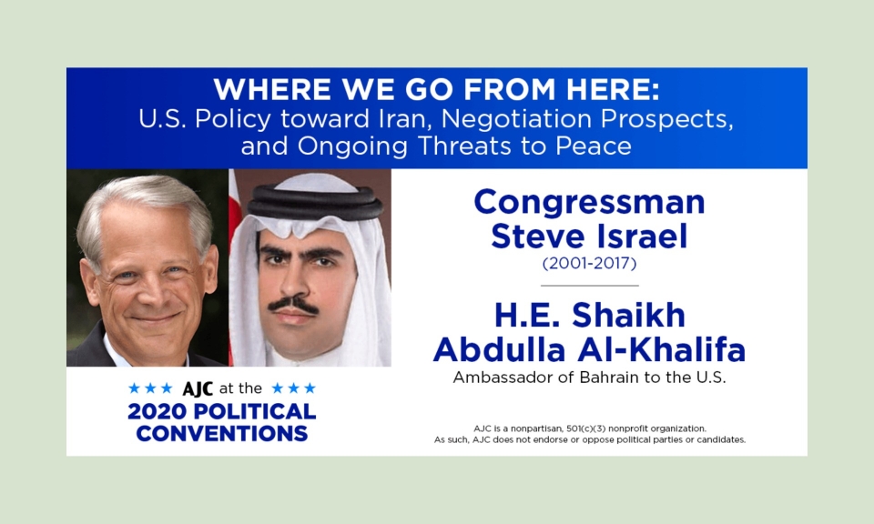 After the US withdrawal from the JCPOA, Tehran continues to advance its nuclear program under reimposed American sanctions. AJC held an in-depth conversation at the Democratic National Convention with Congressman Steve Israel (2001-2017) and the Ambassador of Bahrain to the U.S., H.E. Shaikh Abdulla Al-Khalifa, on the future of the JCPOA, Iran’s regional aggression and challenges for the next four years.