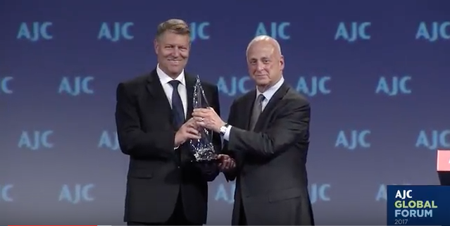 Allan Reich, AJC Executive Council Member presented H.E. Klaus Werner Iohannis, President of Romania, with the AJC Light Unto the Nations Award at the AJC Global Forum 2017 in Washington, D.C.