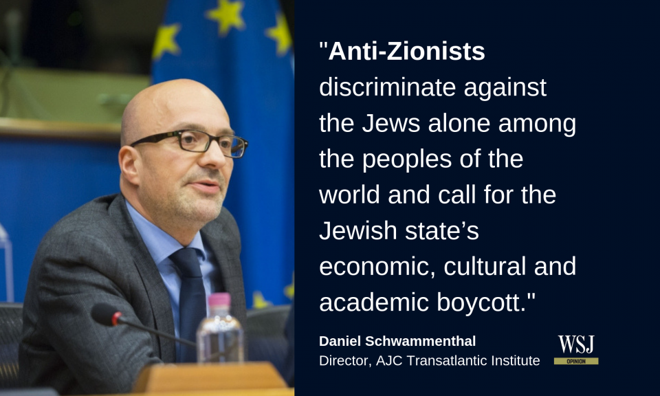 Looking back at last December’s historic EU Council declaration on the fight against anti-Semitism, AJC Transatlantic Institute Director Daniel Schwammenthal praises in The Wall Street Journal the bloc for recognizing that discrimination against Israel is indeed anti-Semitic. After all, what sense would it make to say “I don’t think Ireland has a right to exist, but I’m not anti-Irish”?